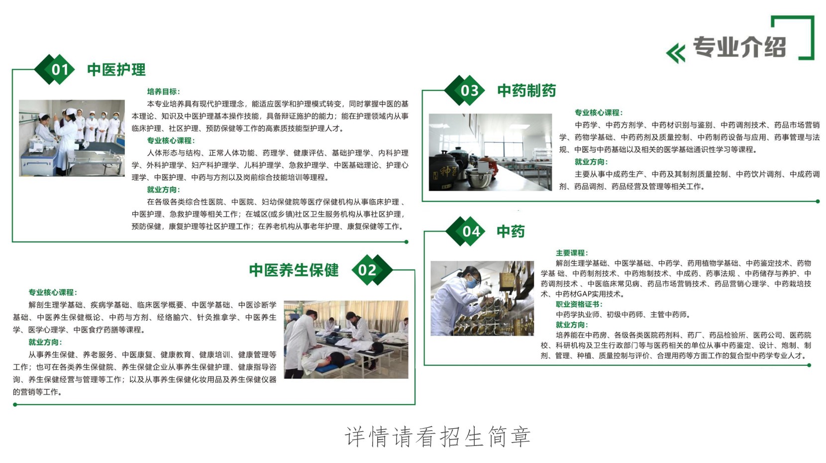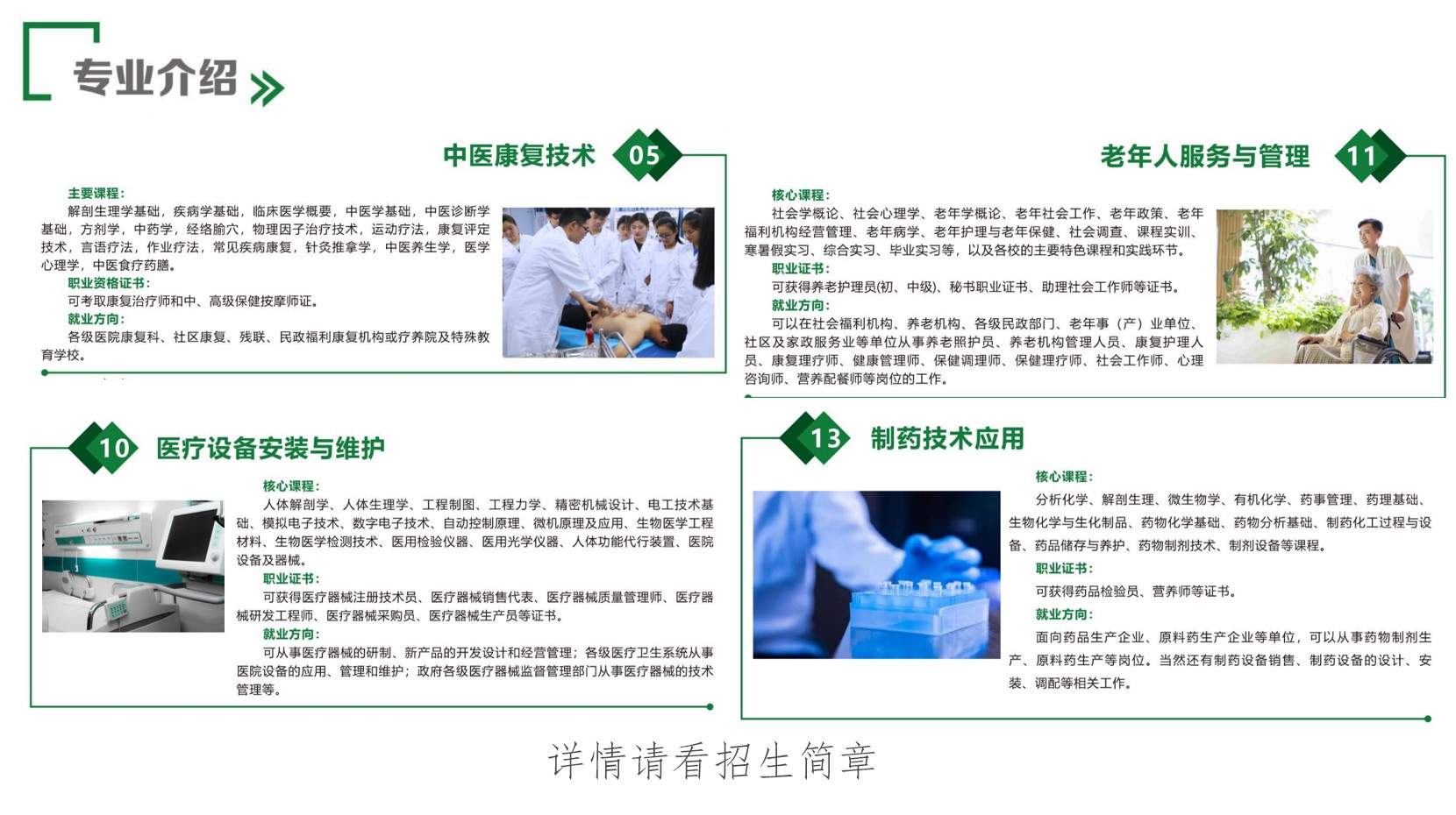 郑州医药健康职业学院是经河南省人民政府批准、教育部备案的一所全日制普通高等专科院校。学校始终坚持社会主义办学方向,始终坚持全面贯彻党的教育方针,始终坚持面向基层的办学定位,围绕国家战略和地方经济社会发展需求,不断拓展办学空间,初步确立了以高等学历教育为主体,继续教育和中等职业教育为两翼的“一体两翼”办学格局。学校目前设有护理学院、康养学院、药学院、检验学院、口腔学院、管理信息学院和思政部、公共基础部、基础医学部、中专部等11个二级学院(部)。开设有护理、康复治疗技术、口腔医学技术、药学、医学检验技术、医学影像技术、药品生产技术、药品经营与管理、社区康复、老年保健与管理、现代家政服务与管理、市场营销、大数据技术、食品营养与健康、中药学、中药制药、软件技术、网络营销与直播电商等29个专业及方向